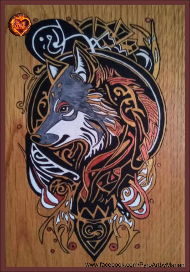 This totally unique piece has been hand drawn, painted with acrylics with accents of gold and copper. It needs a couple more varnish coats to bring the colours out fully. Anyone who knows me is well aware of my love for all things Viking, especially their artwork with heavy Celtic overtones. This piece is on a 1.5" slab of solid oak, with shaped sides. Will look great in any setting. I'm sure you will appreciate just how long it took! You'll definitely not find this on the High Street! ☺
